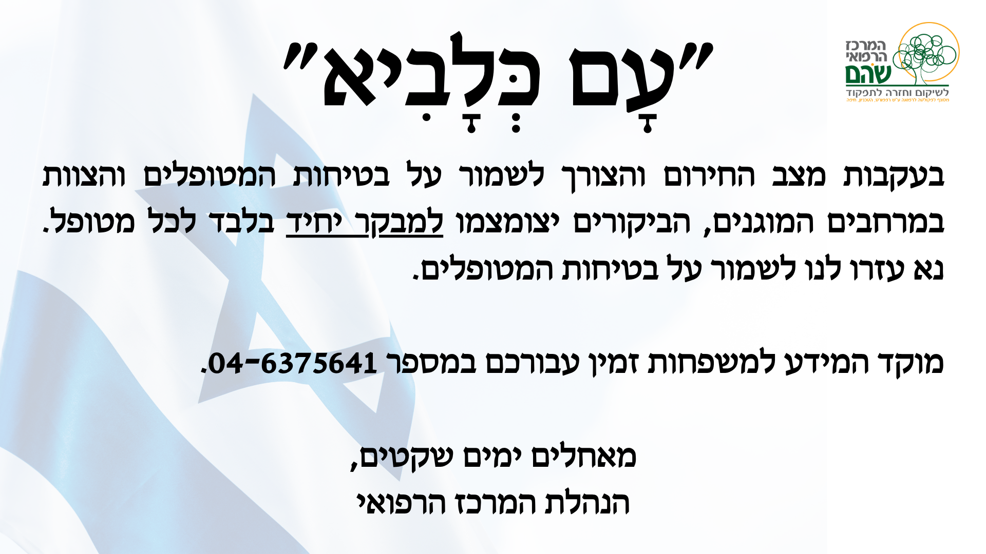 מיגונית הוצבה בסמוך למבנה משאבי אנוש לאחר עיכוב של מספר ימים, ממש באחרונה הוצבה במרכז הרפואי מיגונית חדשה. המיגונית הוצבה בסמוך למבנה משאבי אנוש, מיקום שנקבע לאחר סיור ברחבי המרכז והתייעצות עם נציגי פיקוד העורף. מלחמת חרבות ברזל – היערכות לשעת חירום מאז אירועי הזוועה ביישובי הדרום, ב-7 באוקטובר, נכנסה מערכת הבריאות כולה להיערכות חירום […]